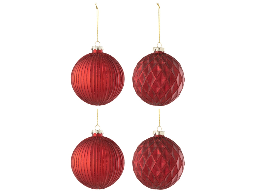 Podívám seSet čtyř červených skleněných vánočních ozdob J-line Alexa 10 cm