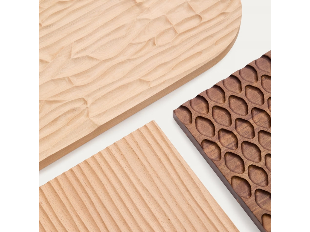 Nástěnná dekorace Trivax se skládá ze čtyř panelů, vyrobených z masivního akátového dřeva. Tyto panely se liší nejen tvarem a zbarvením, ale také povrchovou strukturou, která jim dodává na zajímavosti. Navíc je na zdi můžete rozmístit naprosto libovolně a vytvořit kompozici, které se vám bude líbit. Dostupný je také třídílný set – pokud chcete ozdobit prostornější zeď, můžete je nakombinovat.