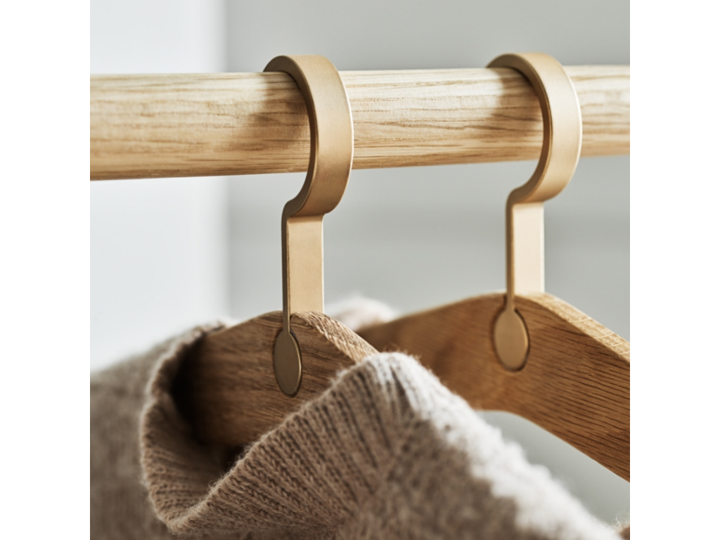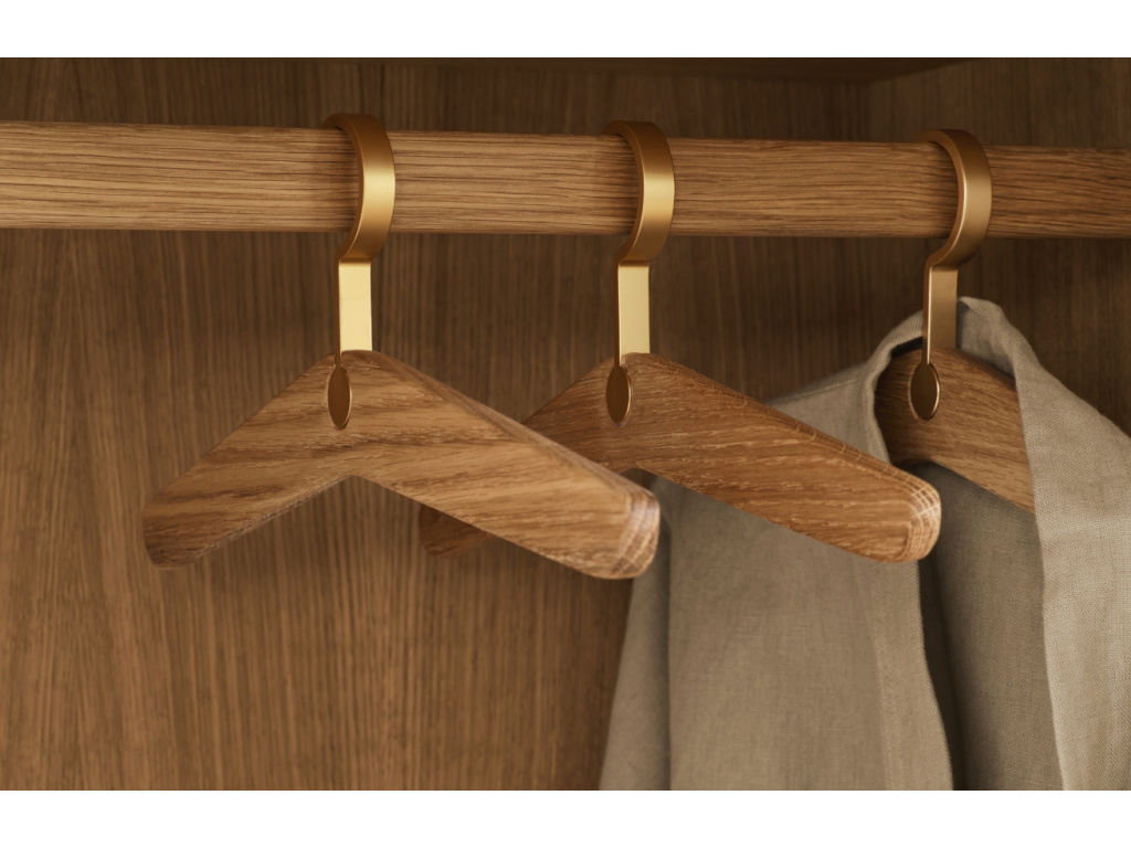 Dopřejte svému šatníku nádech skutečné elegance s ramínky z kolekce Trapeze, která vznikla pod rukama renomovaných dánských designérů Steffensen & Würtz. Jejich smysl pro detail a láska k minimalistickému stylu dala vzniknout ramínkům, která v sobě snoubí krásu a funkčnost. Masivní dubové dřevo s certifikací FSC® v kombinaci s jemnými mosaznými detaily vytváří stylový doplněk, který povyšuje každodenní praktičnost na úroveň luxusního zážitku. Ať už zvolíte přírodní dub pro svěží a jemný vzhled nebo černou variantu pro moderní a dramatický dojem, ramínka Trapeze zaujmou na první pohled. Nečekejte a objevte, jak může být váš šatník elegantní a dobře organizovaný.