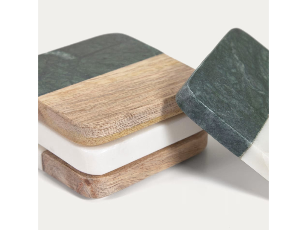 Více infoSet čtyř pestrobarevných mramorových podtácků Kave Home Wilmina