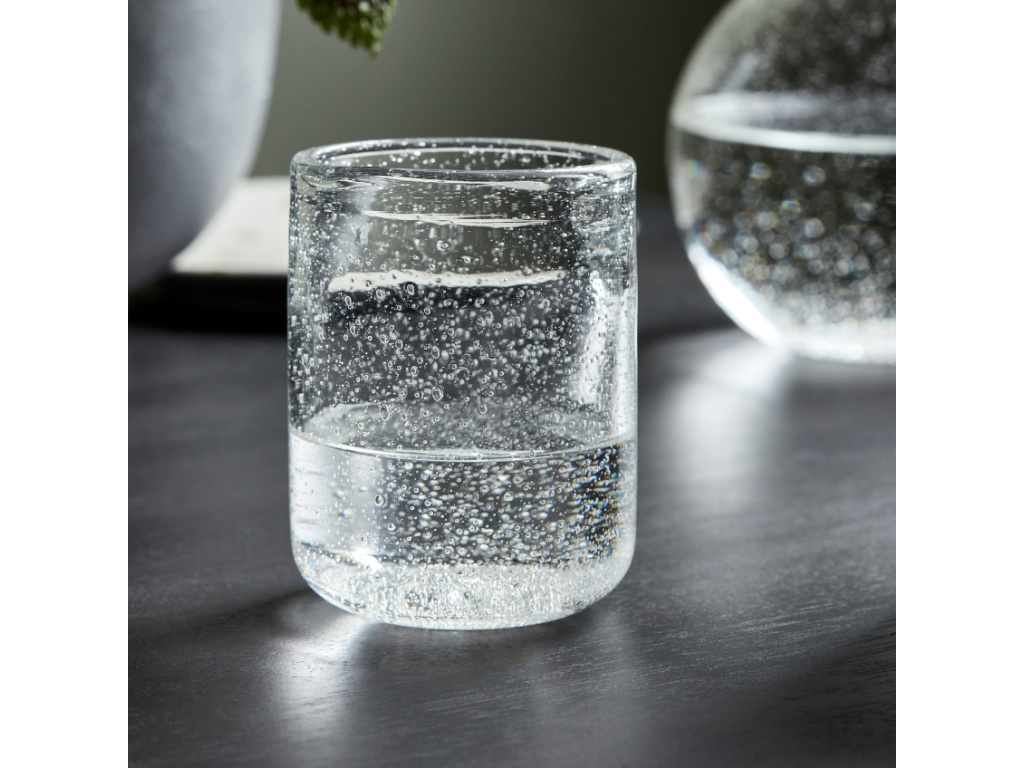 Set čtyř sklenic Rich od značky House Doctor si ihned oblíbíte pro jeho atraktivní vzhled. Sklenice jsou ručně vyráběny z čirého skla, které je doplněno vzduchovými bublinkami, což vytváří elegantní prvek u jinak čistého a funkčního designu. Díky tomu se vám skleničky budou jednoduše kombinovat s dalšími kuchyňskými předměty a navíc se mohou mýt v myčce na nádobí.