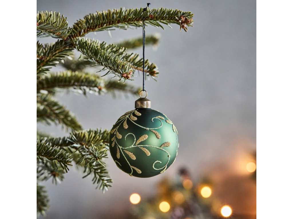 Tento elegantní set čtyř vánočních ozdob Flori od značky House Doctor kombinuje matně zelené sklo a zlatý rostlinný vzor, což vytváří nádech luxusu a retro nostalgie. Ručně zdobený motiv z drobných flitrů a kuliček vytváří krásný kontrast a vašemu stromku vtiskne osobitý šmrnc. S tímto setem podtrhnete výjimečnost nadcházejícího svátečního období. K dostání také v červené variantě.