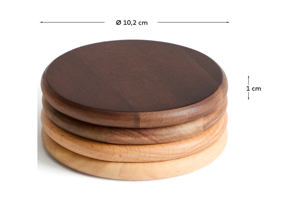 Sada podtácků Nover z masivního akátového dřeva vnese do vašeho stolování dotek syrové přírody a organické elegance. Každý kus vyniká jedinečnou kresbou dřeva, která promění i obyčejné odpolední pití čaje v estetický zážitek. Jsou ideálním doplňkem pro interiéry laděné v rustikálním či skandinávském stylu, kde záleží na detailech a kvalitních materiálech.