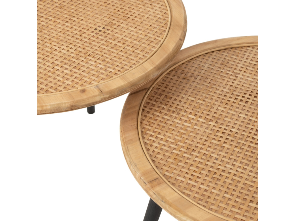 Set konferenčních stolků Bimbo značky J-line skvěle doplní interiéry zařízené v boho nebo etnickém stylu. Přispějí svým přírodním vzhledem a rozpoutají příjemnou atmosféru v kterékoli místnosti. Vzorovaná deska z bambusu v kombinaci s kovovou podnoží tvoří dohromady atraktivní a vzdušný design. Stolky můžete rozmístit dle libosti nebo je ponechat jako set a získat tak větší prostor pro odložení kávy, knihy i občerstvení.