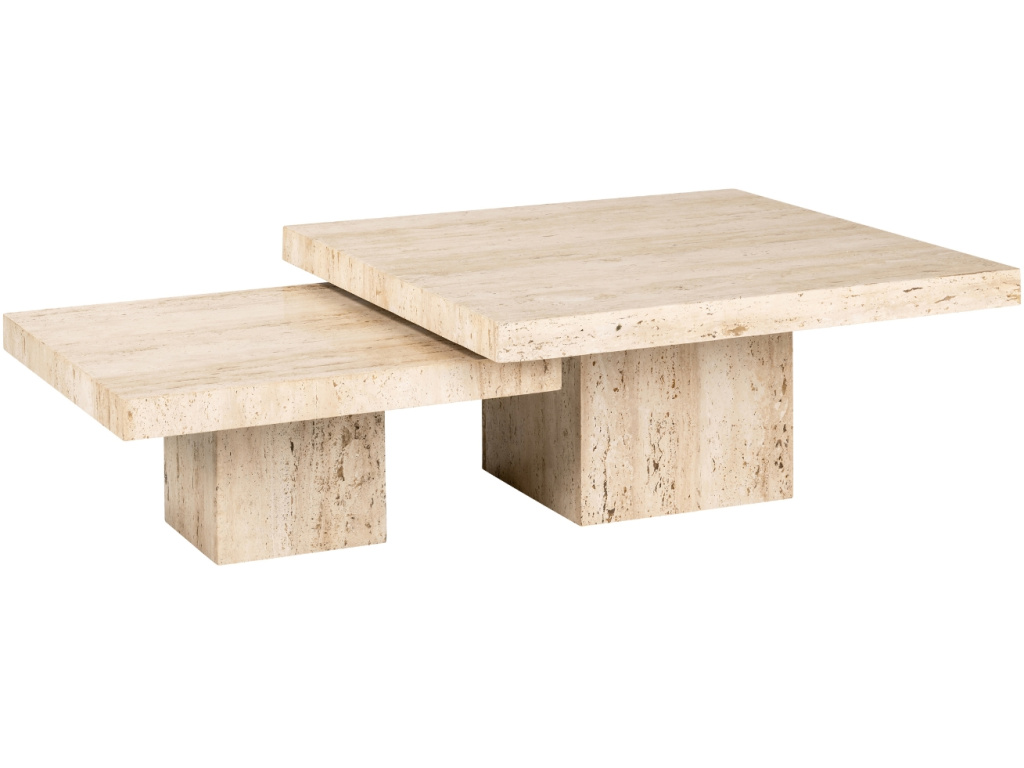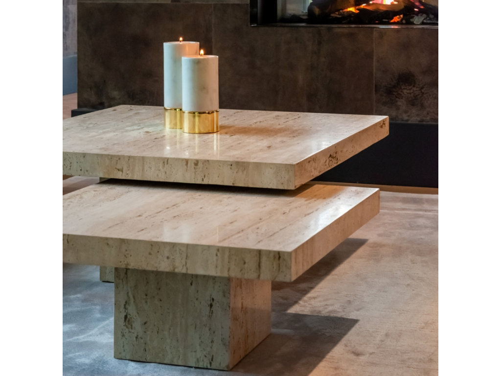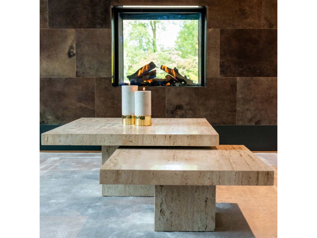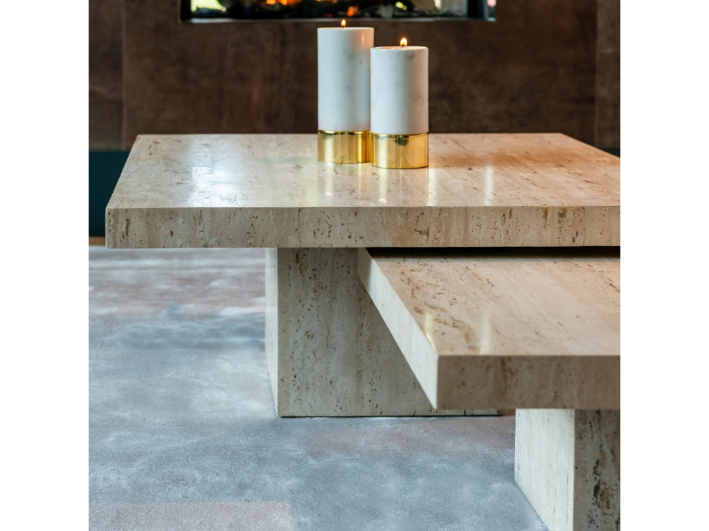 Set dvou konferenčních stolků Richmond La Cantera si získá vaši pozornost především pro jedinečnou kamennou deskou z italského Travertinu. Ta dodá interiéru nádech luxusu a elegance. Travertin je druh vápence s živoucí texturou, která dodává stolkům přirozenou krásu a časem i jedinečnou patinu. Béžová kamenná deska spolu s podnoží tvoří perfektní celek, který skvěle zapadne nejen do rustikálních prostorů.