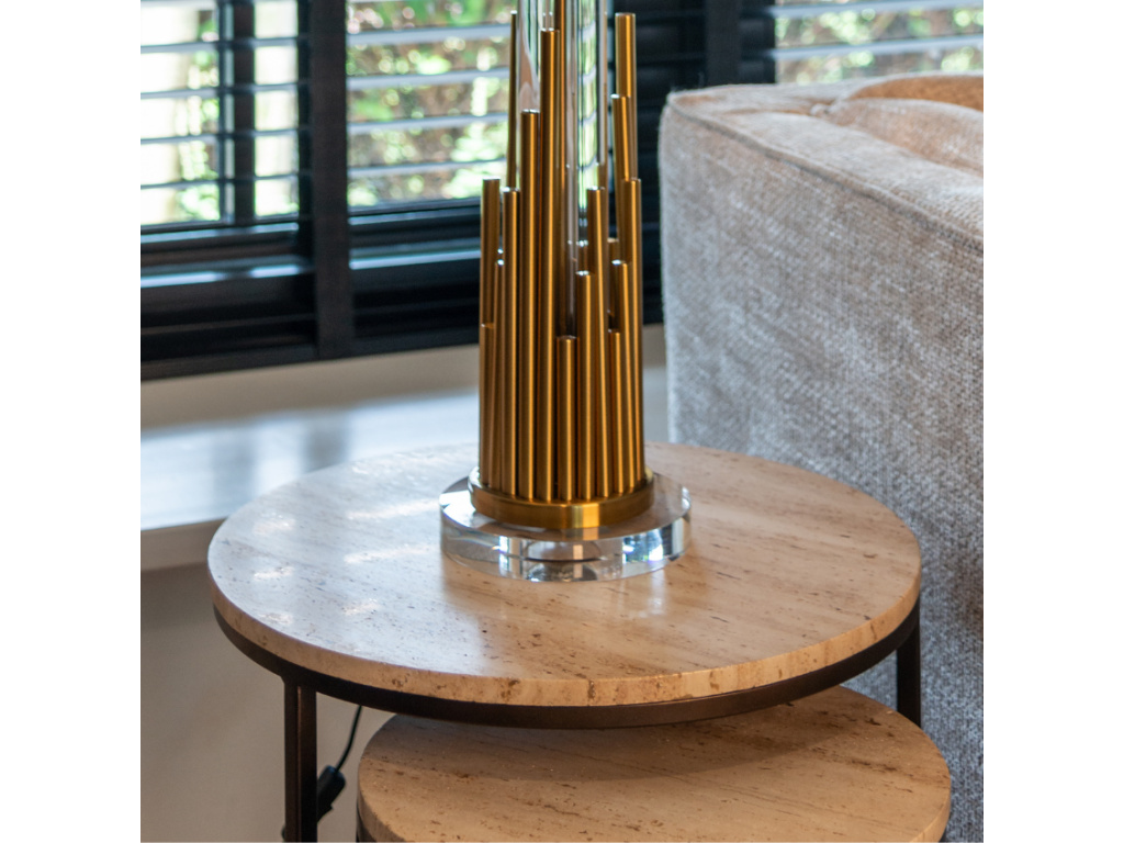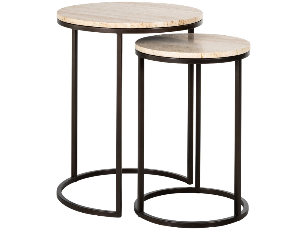 Představujeme vám set dvou odkládacích stolků Avalon od značky Richmond. Tato nádherná sada vyzařuje sofistikovanou estetiku a bude ideální pro doplnění jakéhokoliv současného interiéru. Desky stolu jsou vyrobeny z broušeného travertinového kamene, který se vyznačuje svoji odolností vůči mechanickému poškození – stolky vám tak vydrží dlouhé roky. Podnož stolků je kovová s bronzovou povrchovou úpravou. Stolky Avalon se budou perfektně vyjímat v obývacím pokoji u pohovky, kam na ně můžete odložit třeba ovladač od TV nebo nápoj a drobné občerstvení.