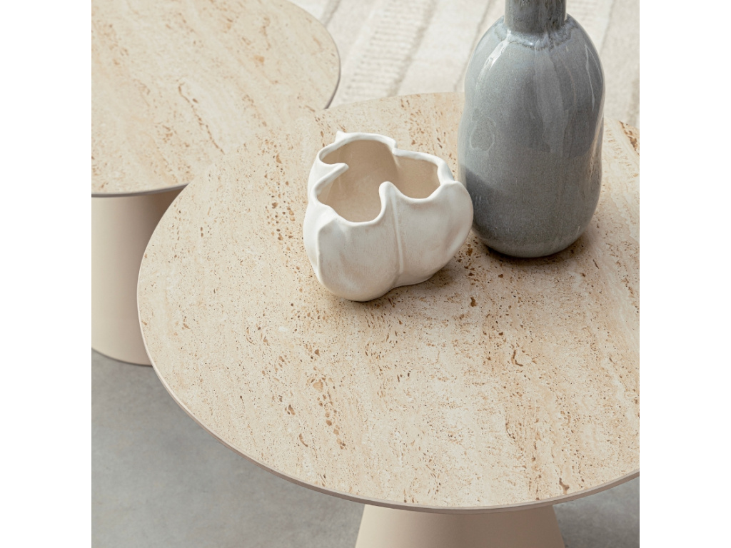 Set dvou konferenčních stolků Hardy od značky Bizzotto si vás ihned získá, a to díky použitým materiálům a barvě. Stolky mají keramické desky s travertinovým efektem, které jsou doplněny o masivní ocelové podnože v neutrální béžové barvě. Ta dodá interiéru nádech luxusu a elegance. Doplňte svůj komerční i domácí prostor s tímto perfektním setem, který hravě zapadne do všech světlejších interiérů.