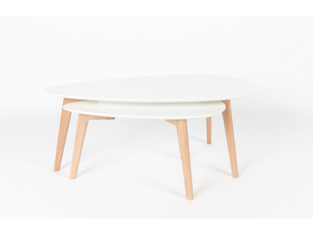 To chciSet dvou bílých dřevěných konferenčních stolků WLL DROP 70/100 cm