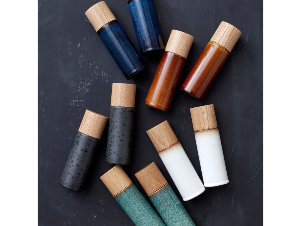 Okořeňte si svoje oblíbené jídlo praktickými stylovými mlýnky na pepř a sůl Zesty od značky BITZ! Sada je vyrobena z lesklé glazované kameniny s otočným prvkem z dubového dřeva, které umocňuje celkový vzhled mlýnků. Pestrá barva se hodí k ostatním produktům z barevných kameninových produktů BITZ, kde reaktivní glazura dodává každému produktu jedinečný vzhled.