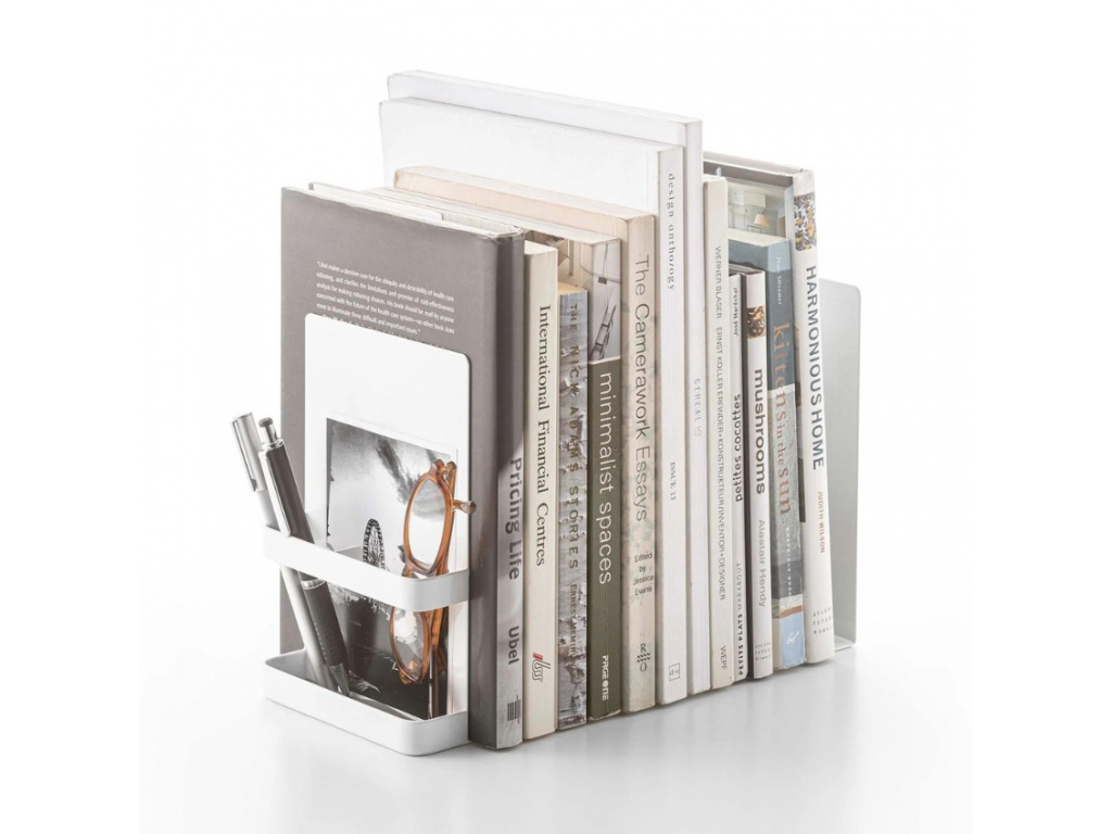 Se zorganizováním knih vám pomohou originální zarážky Tower značky Yamazaki. V setu najdete dvě stejně velké zarážky, které jsou ve tvaru L. Jedna ze zarážek je doplněna o boční stojan, který můžete využít například na tužky či brýle. Zarážky jsou vyrobeny z lakovaného kovu a nabízíme je ve dvou variantách – v bílé či černé barvě. Dodejte knížkám organizovanost a úhlednost s těmito nápaditými zarážkami!
