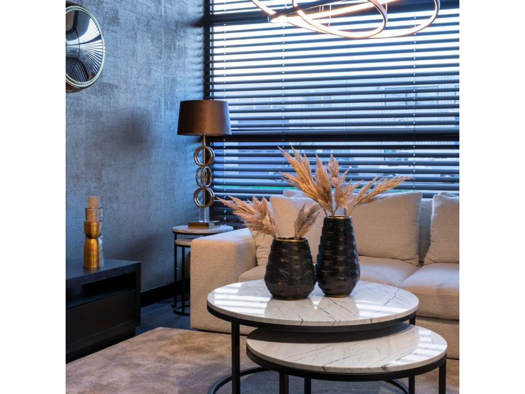 Set dvou odkládacích stolků Lexington od značky Richmond Interiors si zamilujete díky elegantnímu zpracování. Bílá mramorová deska a černá kovová podnož vytváří atraktivní kombinaci, díky níž stolky získávají na šarmu a osobitosti. Stolky k sobě nejsou připevněné, můžete je tak umístit do různých částí vašeho interiéru. Vyniknou v klasických i moderních prostorech.