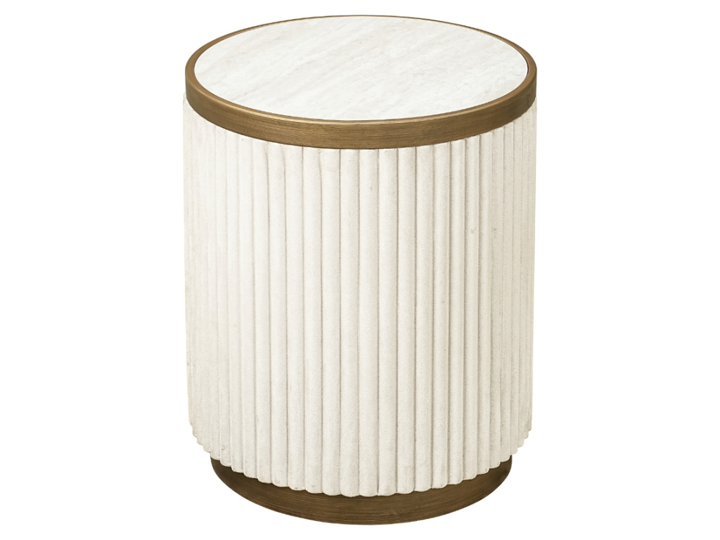 Dvojice kulatých stolků Tivoli přinese do vašeho obývacího pokoje lehkost a noblesu. Kombinace keramické desky s kresbou kamene a zlatě lakovaného rámu působí vzdušně a nadčasově. Větší stolek nabízí dostatek prostoru na odložení šálku kávy, menší stolek s žebrovaným čalouněným obvodem zase vytvoří útulný prvek pro váš interiér. Díky možnosti zasunutí menšího stolku pod větší si snadno přizpůsobíte prostor podle aktuálních potřeb. Perfektní volba pro ty, kdo si potrpí na detail.