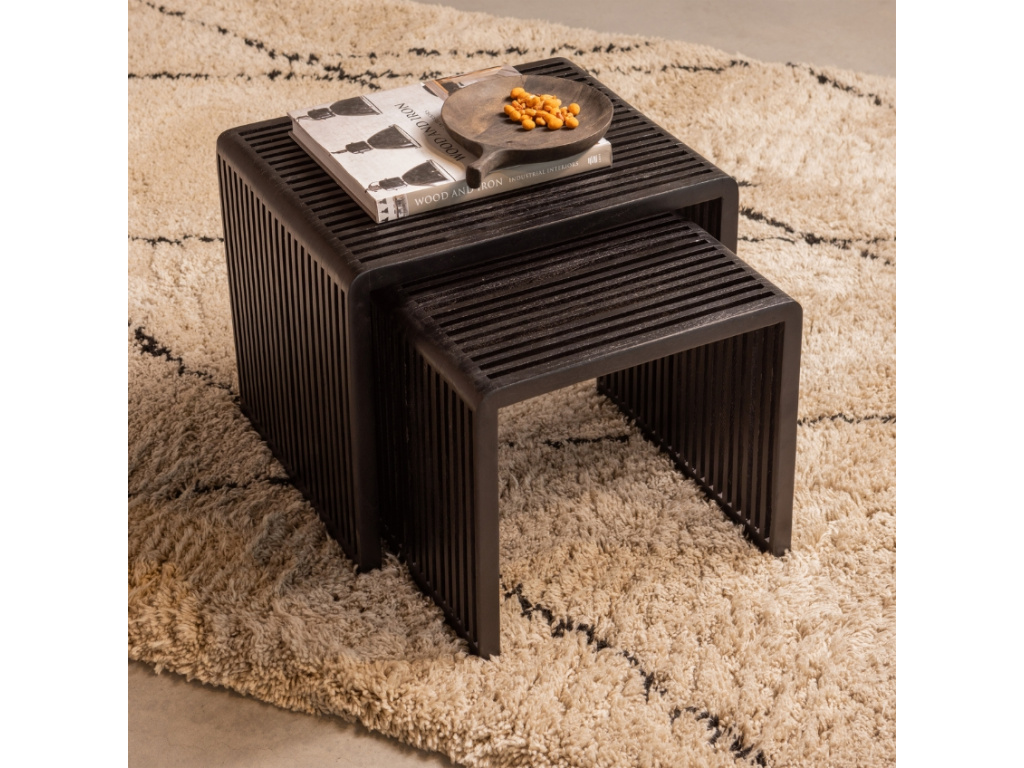 Set odkládacích stolků Alli posune váš moderní interiér zase o stupeň výš. Jsou vyrobeny z recyklovaného teakového dřeva a pyšní se certifikací FSC. Matný černý povrch poskytuje elegantní vzhled, díky čemuž se stolky skvěle hodí do moderního a minimalistického stylu bydlení. Set těchto stolků je praktický díky svému subtilnímu vzhledu, proto se budou skvěle hodit i do menších prostor. Umístěte je k pohovce na odkládání knížky či TV ovladače, nebo je využijte k vystavení vašich pokojovek!