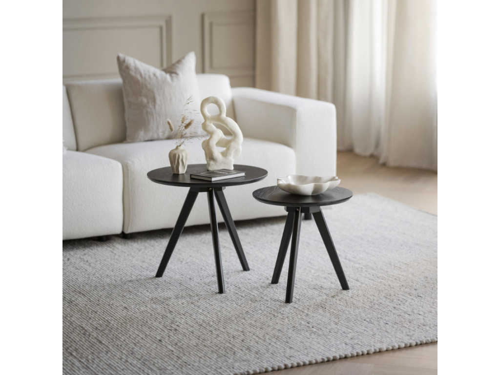 Set stolků ROWICO YUMI nadchne všechny příznivce skandinávského nebo japandi designu. Souhra obou stolků dodá šmrnc ať už v samém středu obývacího pokoje nebo jako praktická dekorace pro květníky s rostlinami. Desky stolků jsou z jasanové dýhy, zatímco podnože jsou z masivního kaučukovníku. Univerzální černá barva a jednoduchý tvar propůjčují možnost stolky nakombinovat s různými variantami nábytku.
