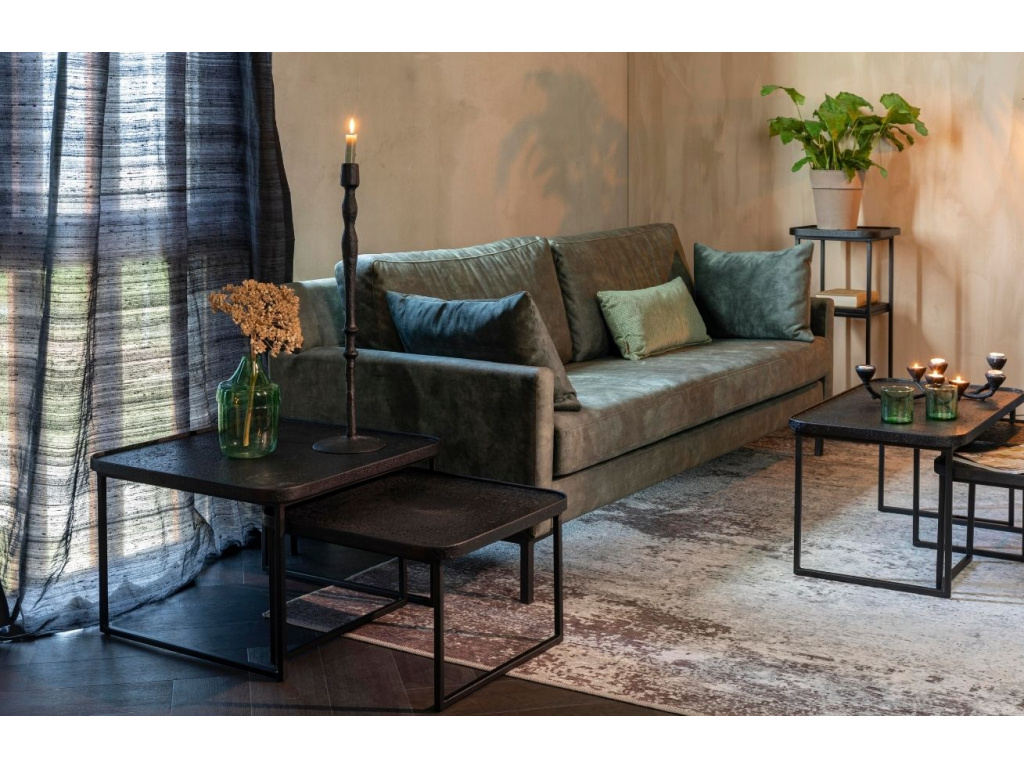 Set konferenčních stolků WINSTON značky DUTCHBONE se skládá ze dvou kusů různých velikostí. Stolky můžete pohodlně zasunout pod sebe a kdykoliv tak ušetřit místo. Čtvercové desky stolků jsou tvořeny pokovanou překližkou se zajímavou jemnou strukturou a stojí na stabilních kovových podnožích.