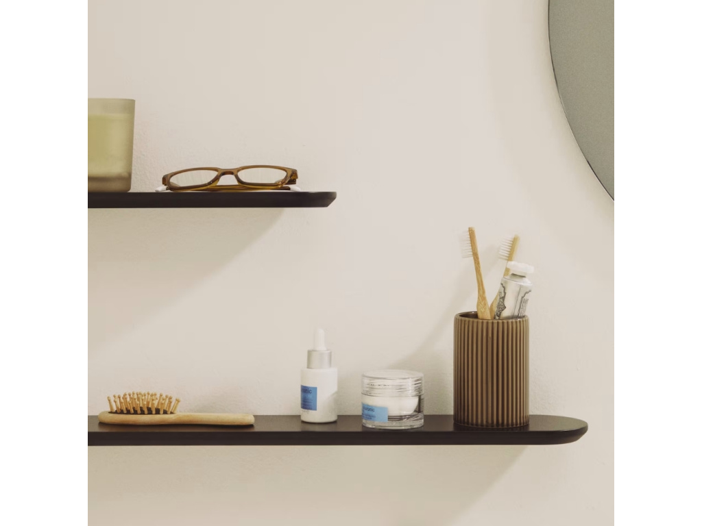 Set dvou polic Arely v černém provedení je praktické a elegantní řešení, které dodá interiéru eleganci a pořádek. Díky jednoduchému designu a neutrální barvě snadno zapadnou do moderního, skandinávského i minimalistického prostoru. Vyrobené z MDF s kvalitní lakovanou povrchovou úpravou nabízejí odolnost a snadnou údržbu. Dvě různé velikosti (35 a 55 cm) umožňují variabilní umístění – ať už je využijete pro vystavení dekorací, knih nebo každodenních drobností, vždy působí vzdušně a uspořádaně. Skvěle se hodí také do koupelny, kde je můžete doplnit dalšími doplňky ze série Arely.