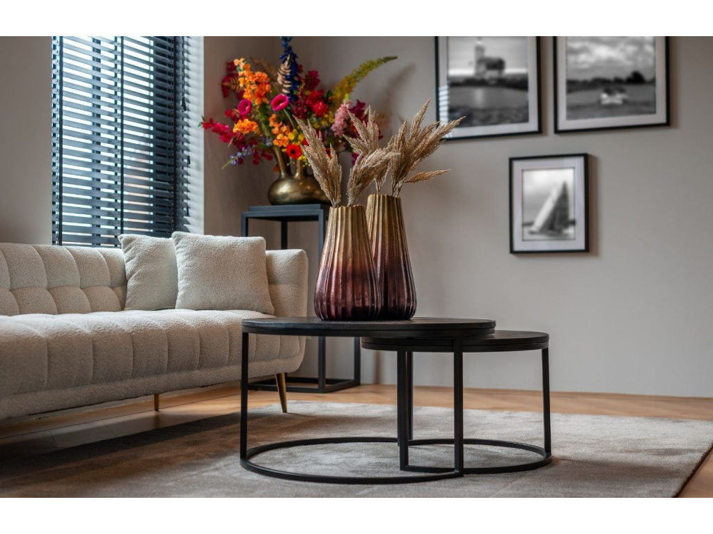 V setu konferenčních stolků Richmond Catana najdete dva stolky různé velikosti, které pod sebe můžete stylově zasunout a získat tak odkládací plochu s kaskádovým efektem. Desky stolků jsou vyrobeny z masivního mangového dřeva černé barvy, které přinese do interiéru styl. Mangové dřevo je doplněno podnoží z černě lakovaného kovu. Stolky můžete použít v klasických i moderních interiérech.
