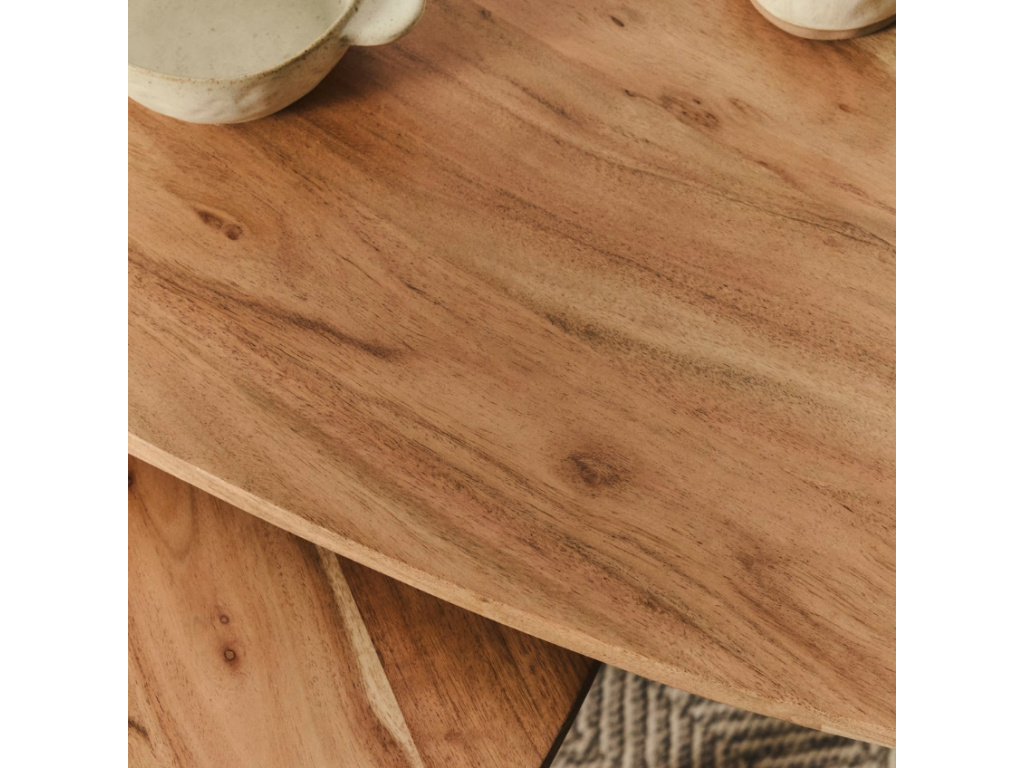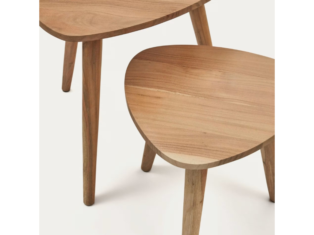 Vneste do svého interiéru teplo a charakter s odkládacími stolky Duvani. Tento stylový set dvou stolků z masivního akátového dřeva je dokonalou kombinací přírodního vzhledu a moderního designu. Jemné tóny dřeva zvýrazňují přirozenou strukturu a dodávají každému kusu jedinečný vzhled. Rozdílné velikosti umožňují variabilní použití – společně tvoří harmonický celek, samostatně vyniknou jako solitéry v různých částech domova. Ideální k odložení šálku kávy, oblíbené knihy nebo dekorací, které milujete. Duvani není jen praktický doplněk, ale stylový prvek, který dodá vašemu prostoru uvolněnou a svěží atmosféru.