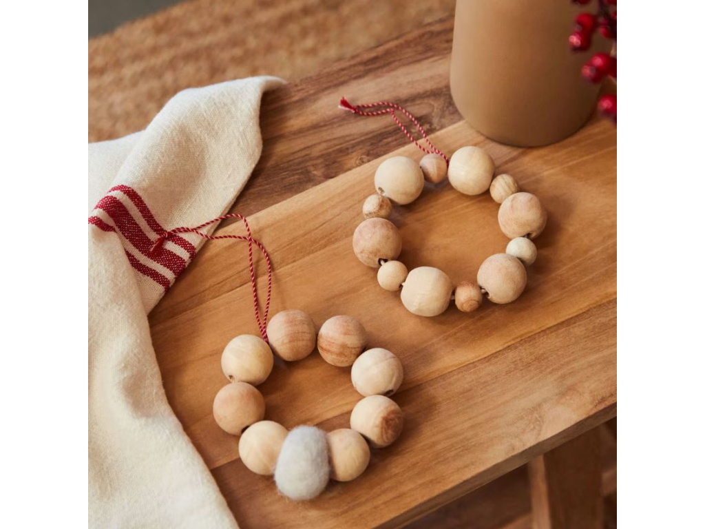 Ozdoby Kave Home Suze jsou tvořeny korálky ze dřeva a plsti. V setu najdete dva kusy, které se skvěle hodí nejen na vánoční stromeček. Použití přírodních recyklovatelných materiálů udělá radost každému milovníkovi přírody. Ozdoby navíc interiér zútulní a přinesou s sebou příjemnou atmosféru.