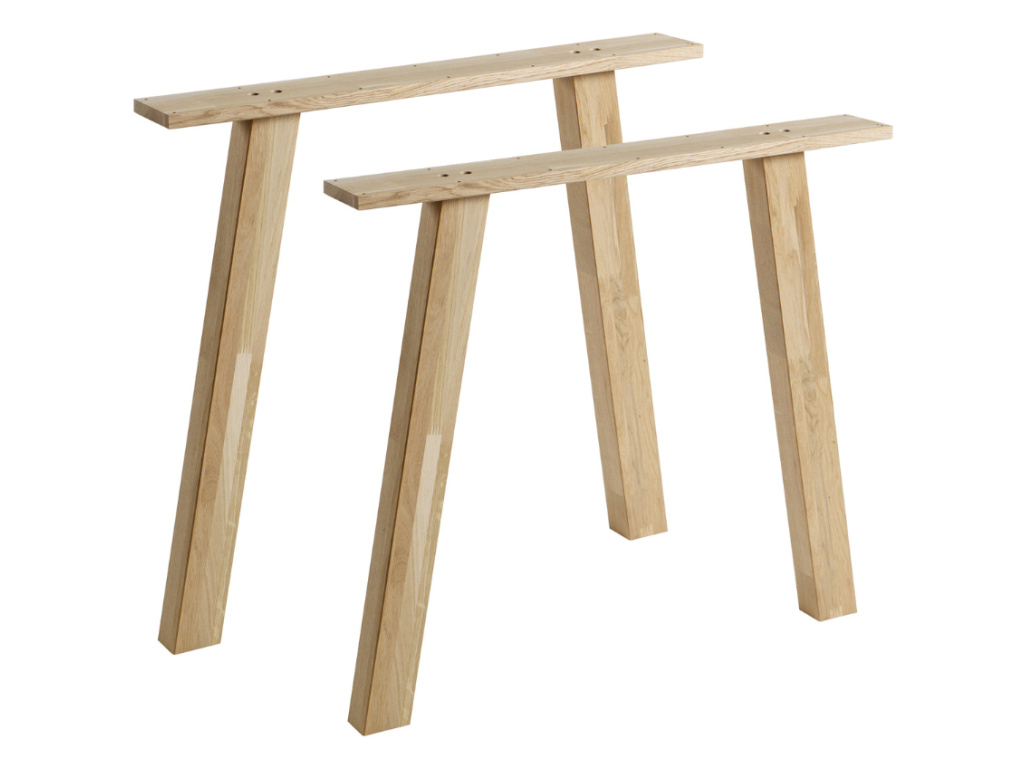 Sestavte si doma unikátní jídelní stůl! S dřevěnými stolovými podnožemi od holandské značky Hoorns si můžete vytvořit jídelní stůl přesně podle vašich představ. Stačí jen zvolit si vyhovující desku a designovou podnož, která vám sedne do vkusu. Na výběr máte z několika různých tvarů, materiálů a velikostí, díky čemuž si vybere opravdu každý. Zvolte si například tento set dubových podnoží O-Leg ve tvaru písmene "A" – představuje ideální řešení pro stolové desky o širokém rozpětí. Použité masivní dubové dřevo doporučujeme natřít čirým lakem na nábytek, výrazně tím prodloužíte životnost materiálu. Neumisťujte do přílišného tepla či vlhka, vyhnete se tak riziku změny tvaru materiálu.