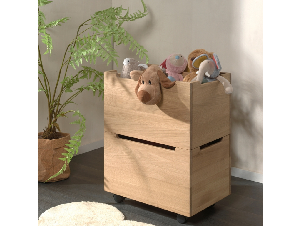 Set dvou boxů Forrest představuje praktické řešení úložného prostoru, které skvěle doplní dětský pokoj i moderní interiér. Každý box je vyroben z dubového dřeva s přirozenou kresbou, takže působí nadčasově a snadno ladí s ostatním nábytkem. Robustní konstrukce zajišťuje dlouhou životnost a spolehlivost při každodenním používání. Díky hladce pojízdným kolečkům lze boxy snadno přesouvat tam, kde jsou právě potřeba. Jsou ideální na hračky, knihy, deky nebo sezónní doplňky, takže pomáhají udržet pořádek a vytvořit přehledný prostor. Otevřený horní design umožňuje dětem pohodlný přístup a podporuje jejich samostatnost při uklízení, zatímco možnost snadného skládání boxů na sebe šetří místo a zajišťuje efektivní organizaci. Nízký profil zároveň usnadňuje zasunutí boxů pod postel nebo do volných úložných míst v nábytku. Přírodní dubové provedení dodává interiéru hřejivý a harmonický výraz. Kolekce FORREST vzniká s důrazem na každý detail a působí mimořádně uceleně, což ocení každý, kdo hledá kvalitní nábytek s osobitým charakterem. Tento set je skvělou volbou pro každého, kdo hledá funkční, estetické a odolné úložné řešení.