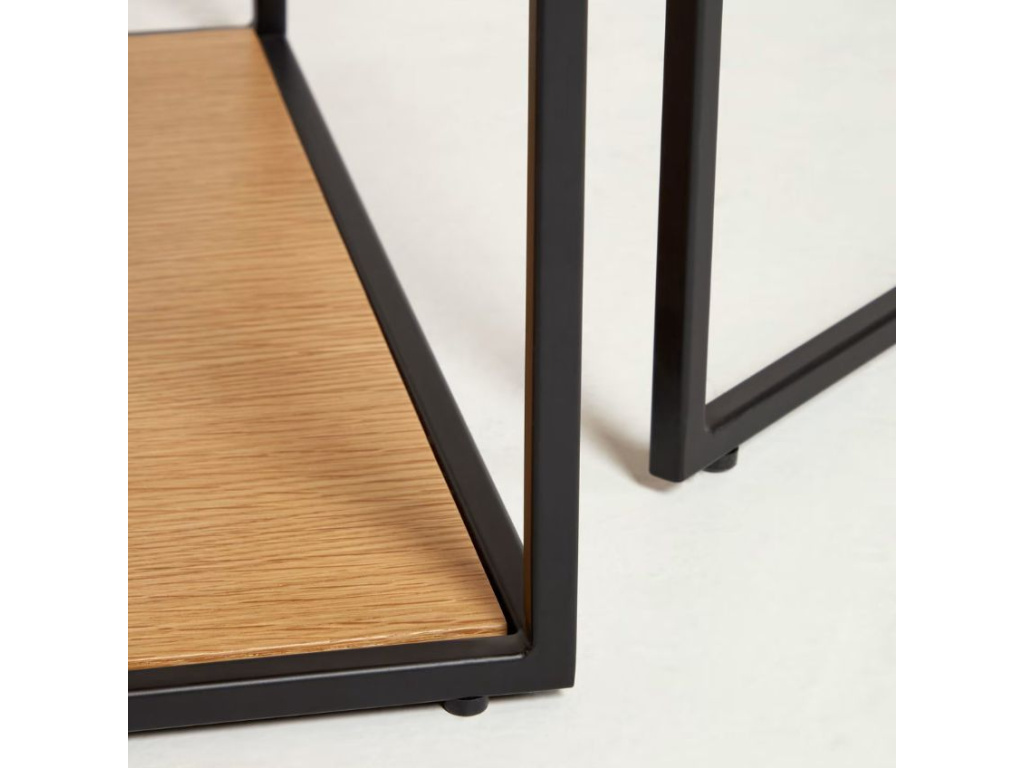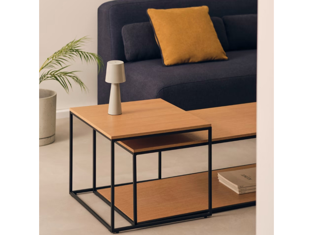 Set stolků Yoana s minimalistickým designem pochází z rukou designérů značky Kave Home. Jejich jednoduchou, černě lakovanou kovovou konstrukci doplňují desky z dubové dýhy, díky kterým se set skvěle hodí do skandinávských interiérů. Větší ze stolků lze snadno zasunout pod menší, díky čemuž můžete kdykoliv ušetřit v interiéru potřebné místo. Yoana působí nadčasově a do interiéru vnese nádech elegance.
