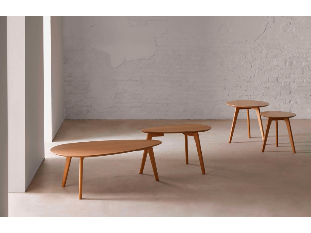 Set dvou dubových konferenčních stolků Conrad od španělské značky Somcasa okouzlí všechny příznivce skandinávského designu. Atypicky zaoblený tvar desek upoutá pozornost nejen vaší návštěvy. Minimalistickou desku z dubové dýhy doplňuje jednoduchá podnož z dubového masivu. Stolky můžete do prostoru umístit dohromady, ale i zvlášť – klidně každý do jiné místnosti.