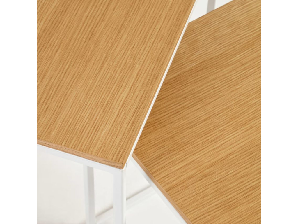 Set stolků Yoana s minimalistickým designem pochází z rukou designérů značky Kave Home. Jednoduchou, bíle lakovanou kovovou konstrukci stolků doplňují prostorné desky z dubové dýhy. Stolky můžete kdykoliv zasunout pod sebe, což představuje skvělé řešení pro menší domácnosti. Yoana působí nadčasově a do vašeho interiéru vnese nádech severské čistoty a elegance.