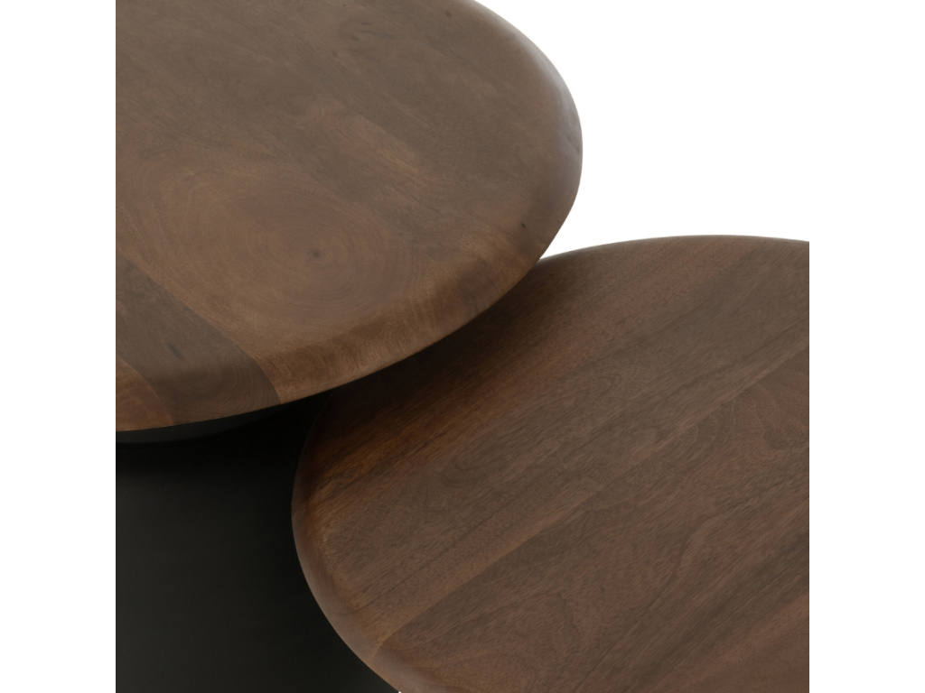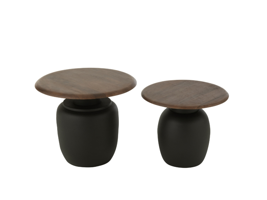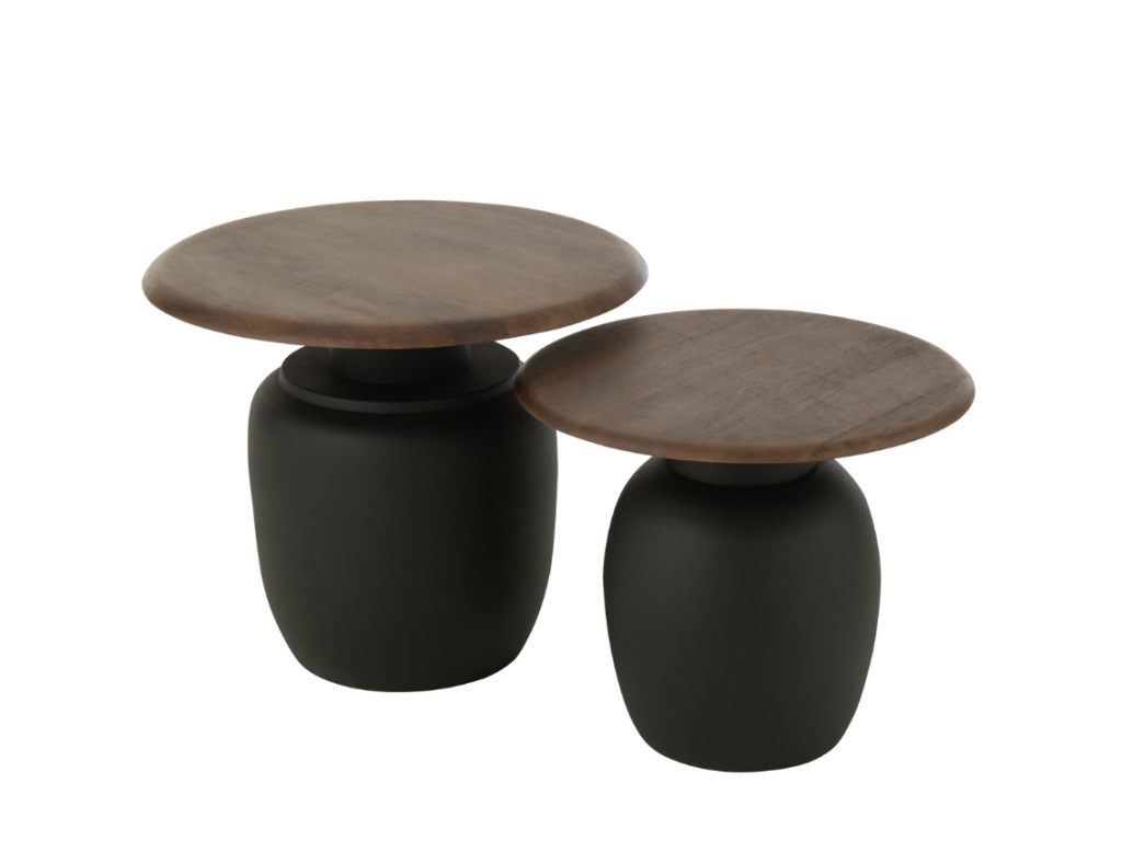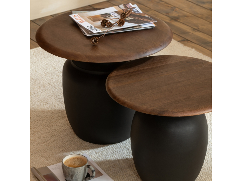 Set odkládacích stolků Lucian vnese do vašeho interiéru jedinečnou kombinaci elegance a praktičnosti. Díky harmonickému spojení kovu a dřeva stoly působí moderně, a přesto zůstávají nadčasové. Černá podnož v kontrastu s přírodní kresbou dřeva zvýrazňuje sofistikovaný vzhled setu. Menší stolek můžete umístit samostatně nebo oba kombinovat pro ještě výraznější efekt. Využijete je nejen jako odkládací plochu pro kávu, knihy či dekorace, ale také jako designový prvek, který přitáhne pozornost a skvěle zapadne do moderního, industriálního i skandinávského stylu vašeho obývacího pokoje či kanceláře.