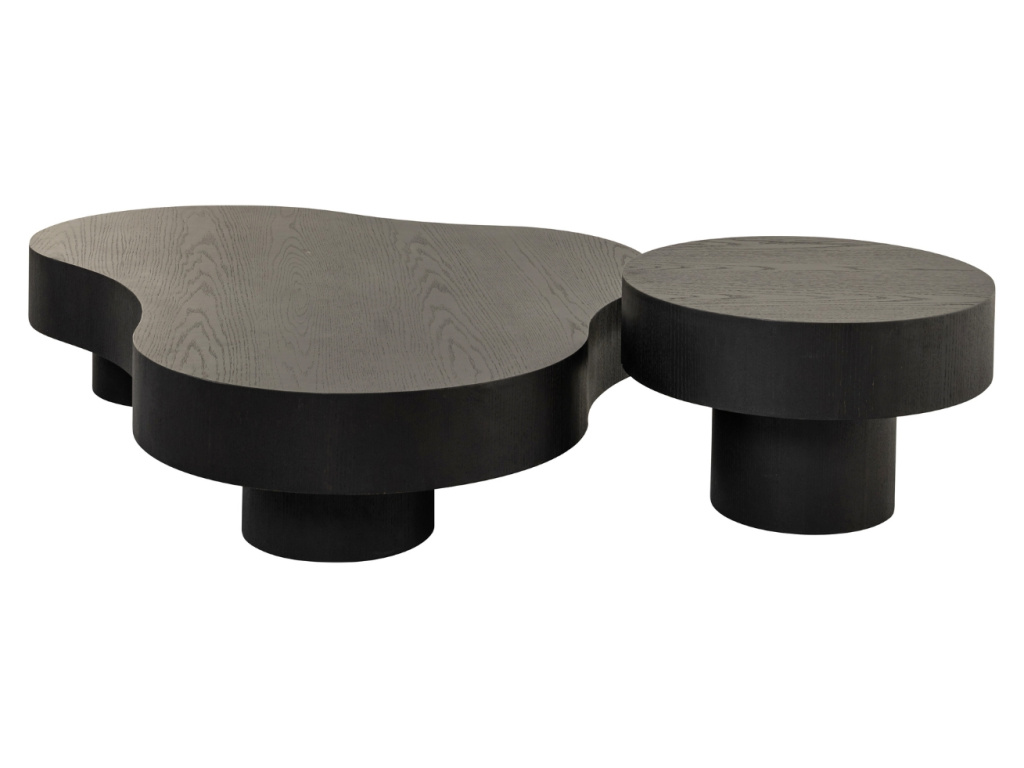 Stolky Bogor v sobě kombinují masivní robustnost s minimalistickým designem, který vynikne zejména díky tmavé dubové dýze. Větší stolek asymetrického tvaru se krásně doplňuje s menším kulatým, se kterým vytvářejí pár umožňující hravou variabilitu uspořádání. Tento set nabízí dostatek prostoru pro odložení kávy, knih nebo dekorací. Díky preciznímu zpracování dřeva a jeho výrazné kresbě bude set Bogor působit jako dominantní prvek ve vašem obývacím pokoji, kde se stane oblíbeným místem pro setkávání s rodinou a přáteli.