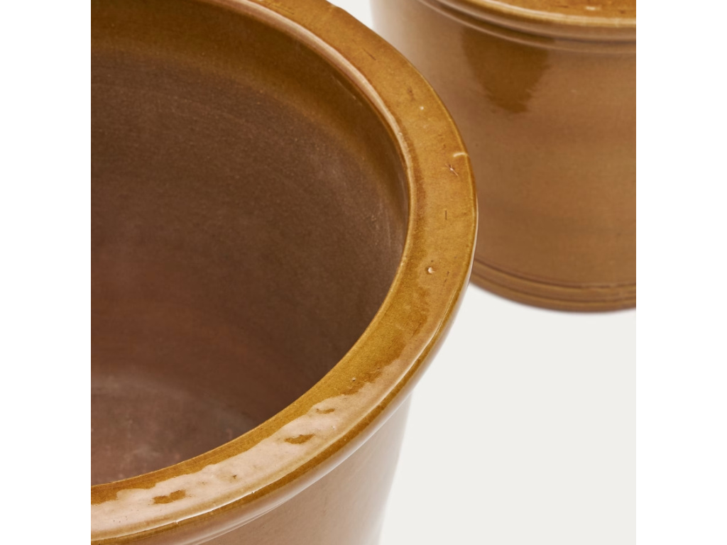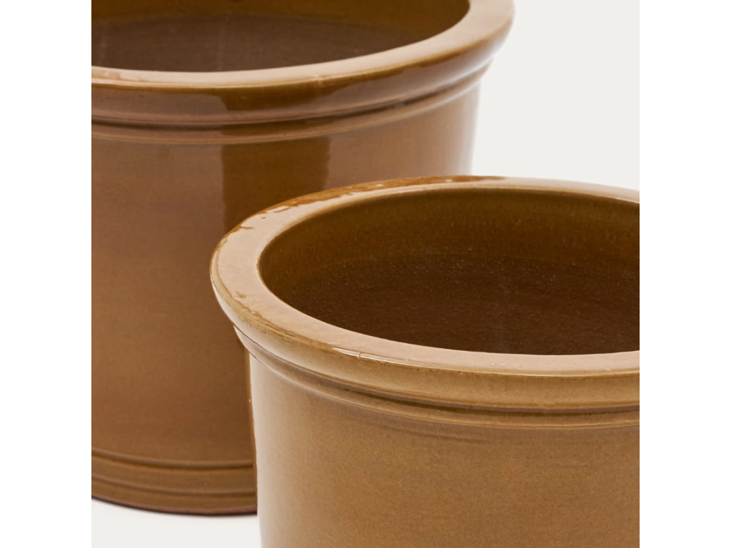 Set dvou květináčů Presili od Kave Home vkusně doplní váš venkovní prostor či terasu. Díky keramickému materiálu s glazovanou povrchovou úpravou jsou květináče odolné vůči vlhkosti, povětrnostním podmínkám a extrémním teplotám. Keramika je navíc přírodní materiál, který díky své prodyšnosti pomáhá regulovat vlhkost. Navíc každému jednotlivému kousku dodává jedinečné tóny a originální textury. Dejte vašim venkovním květinám styl s tímto stylovým setem!