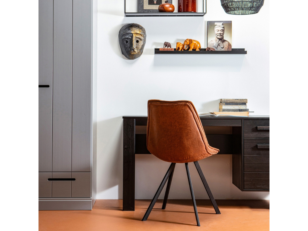 Jídelní židle Wens od holandského výrobce Hoorns vám poskytne úžasný komfort díky kvalitnímu čalounění a dodá prostoru jedinečnost. Úchvatnou kombinaci také utváří sedák v koženkovém provedení s kovovou, černě lakovanou podnoží. Židle Wens se skvěle hodí do moderních jídelen nebo například zasedacích místností s nádechem klasického či industriálního stylu.