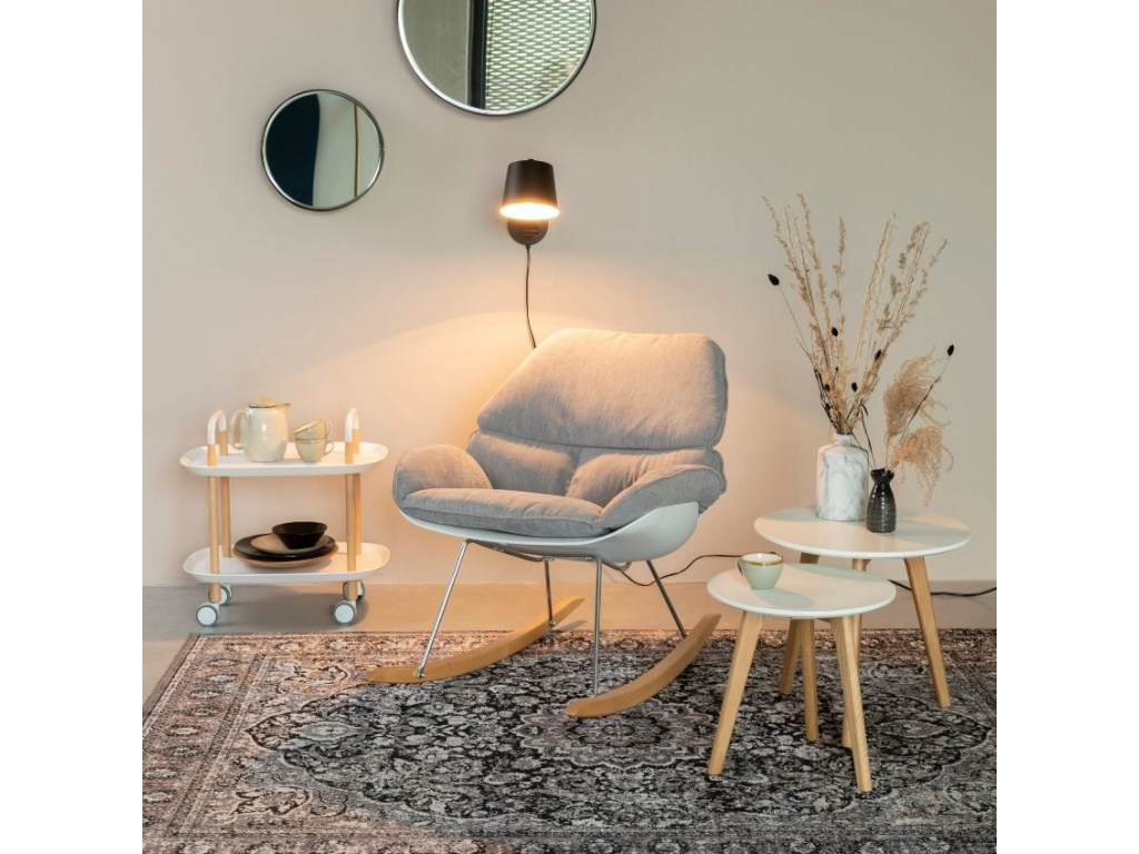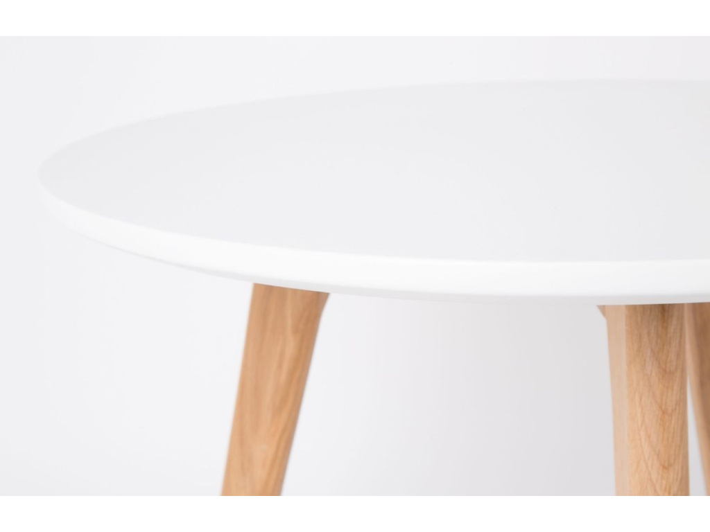 Set konferenčních stolků Bodine je moderní, jednoduchý set dvou stolků s kulatou deskou a přírodní podnoží. Deska je z lakované MDF. Podnož tvoří tři masivní dubové nohy. Tento stylový set skvěle doladí interiéry s prvky skandinávského stylu a výborně poslouží k umístění květin a dekorací.