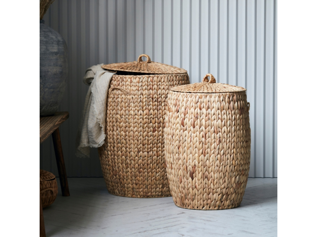 Ať už je použijete jako koše na prádlo nebo do nich uložíte plédy a polštářky, budou pro vás koše Laun skvělým pomocníkem. Jsou dodávány včetně vík, která jsou stejně jako koše vyrobena z vodního hyacintu. Tento přírodní materiál se skvěle hodí do rustikálních interiérů, slušet jim to ale bude i kdekoliv jinde.