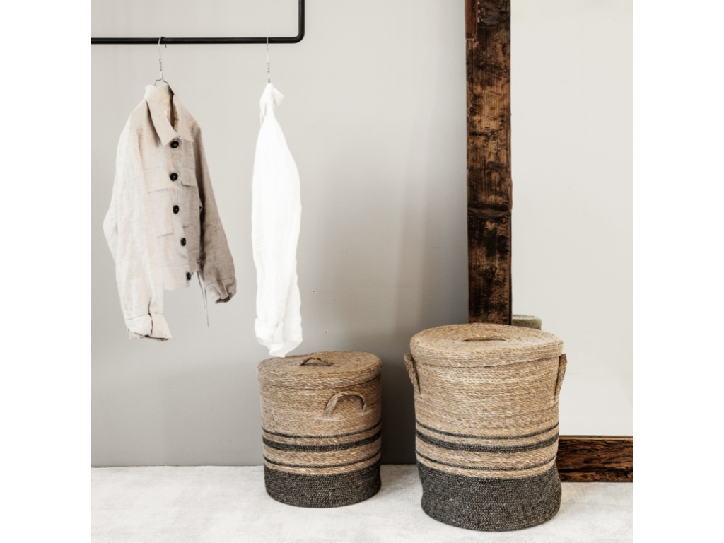 Schovejte své prádlo do stylového setu košů Laundry. V setu najdete dva kusy vyrobené z mořské trávy a juty, které skvěle zútulní vaši koupelnu. A pokud zrovna nehledáte doplněk do koupelny či prádelny, mohou koše posloužit i kdekoliv jinde. V obývacím pokoji vám do nich můžete odkládat deky a polštářky, v dětském pokoji je mohou děti používat k uskladnění hraček.