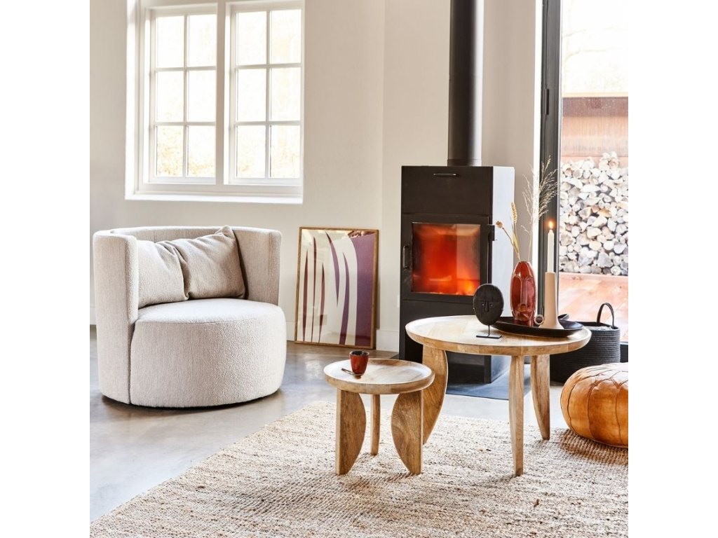 Nápadný, ale zároveň jemný a elegantní design odkládacích stolků Nataj se skvěle hodí do interiérů laděných ve skandinávském stylu. Set obsahuje dva různě velké stolky, které budou pohromadě vypadat skvěle. Umístit je ale můžete i samostatně, větší z nich lze využít jako stolek konferenční. Desky i podnože stolků jsou vyrobeny z masivního mangového dřeva a jejich výrazná kresba přinese do interiéru hřejivou přírodní atmosféru.