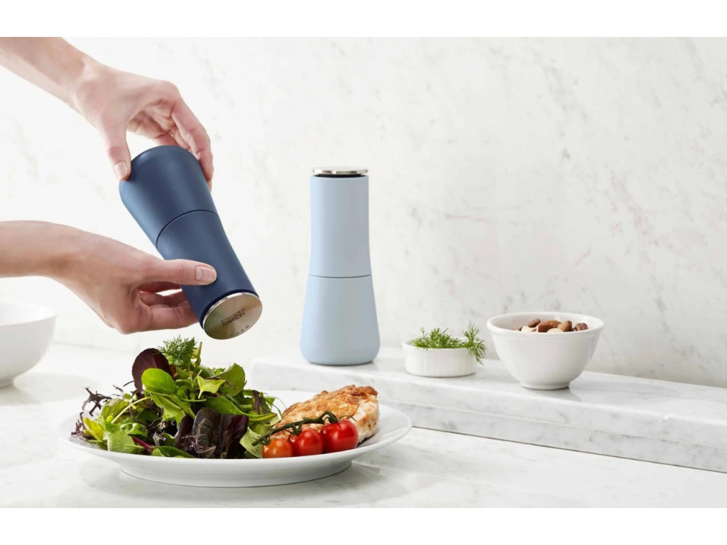 Okořeňte si svoje oblíbené jídlo praktickými stylovými mlýnky na pepř a sůl Milltop od Joseph Joseph! S těmito mlýnky nehrozí odpadávání zbytků pepře a soli po odložení na pracovní nebo jídelní plochu. Po užití mlýnek otočíte mechanikou vzhůru a zbytky pepře nebo soli propadnou zpět do zásobníků. Univerzální keramická mlecí mechanika mlýnků Milltop je zakryta elegantním nerezovým kolečkem, jehož otáčením se nastavuje hrubost mletí.