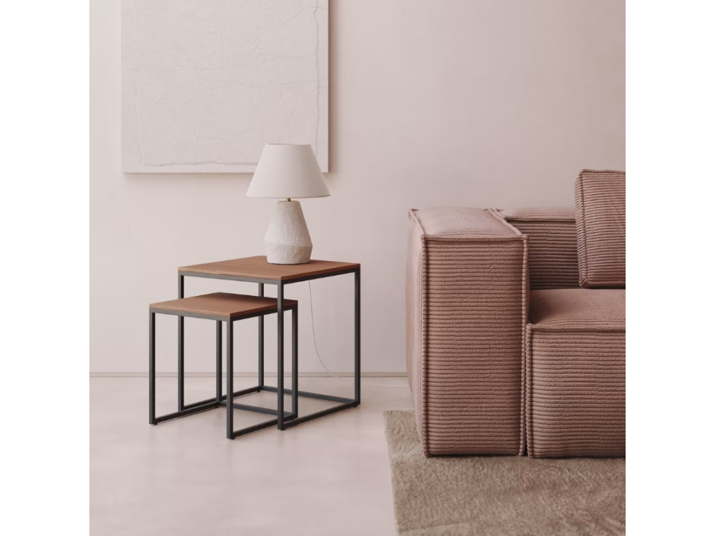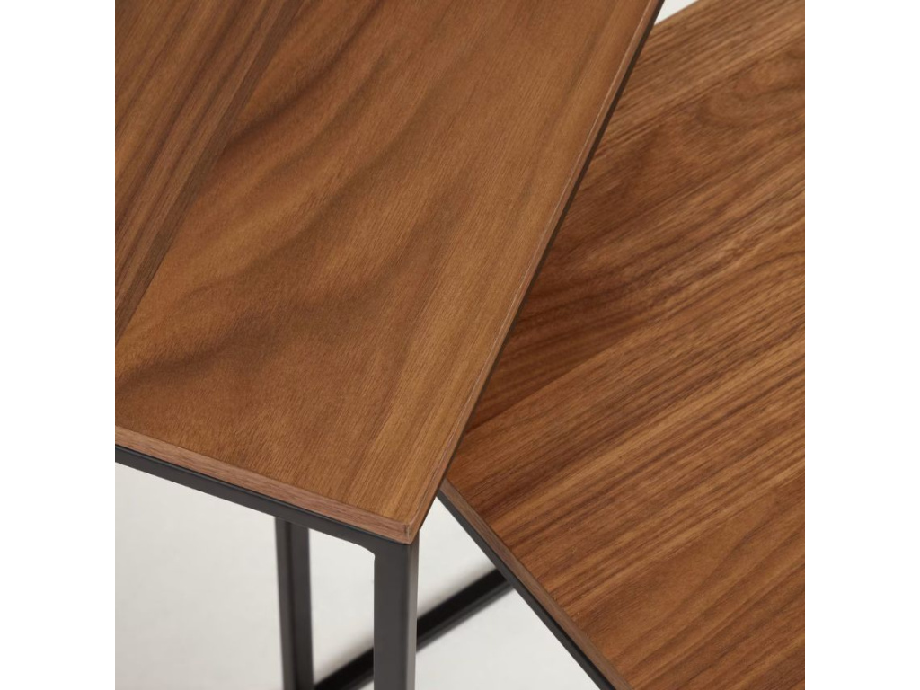 Set stolků Yoana s minimalistickým designem pochází z rukou designérů značky Kave Home. Jednoduchou, černě lakovanou kovovou konstrukci stolků doplňují prostorné desky z atraktivní ořechové dýhy. Stolky můžete kdykoliv zasunout pod sebe, což představuje skvělé řešení pro menší domácnosti. Yoana působí nadčasově a do vašeho interiéru vnese nádech elegance a nadčasovosti.