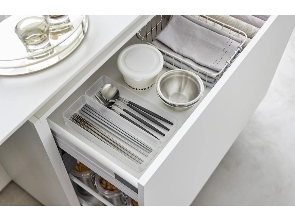 Organizéry Tower od značky Yamazaki jsou praktické a všestranné řešení pro udržení pořádku v zásuvkách. Sada obsahuje dva organizéry, které jsou vyrobeny z odolného a snadno udržovatelného plastu, který zaručuje jejich dlouhou životnost a lehkost. Díky možnosti stohování můžete vytvářet různé kombinace a přizpůsobit organizéry konkrétním potřebám vaší zásuvky. Organizéry jsou ideální pro uložení drobných předmětů, jako jsou psací potřeby, šperky, kosmetika, kuchyňské potřeby nebo drobné nástroje – zkrátka pomáhají udržet zásuvky přehledné a uspořádané.
