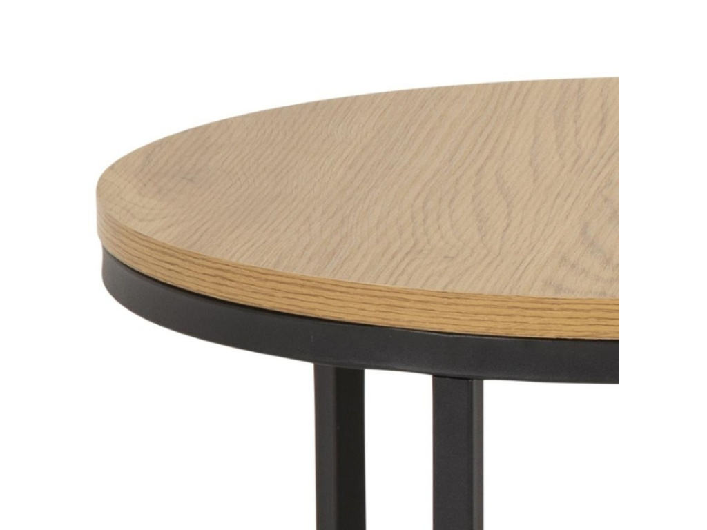 Elegantní set dvou konferenčních stolků Sprut si zamilujete na první pohled. Deska stolků z melaminu v přírodním dekoru dubu je doplněna o černě lakovanou kovovou podnož a vytváří tak trendy kontrast. Set stolků nejlépe doplní industriálně laděné interiéry.