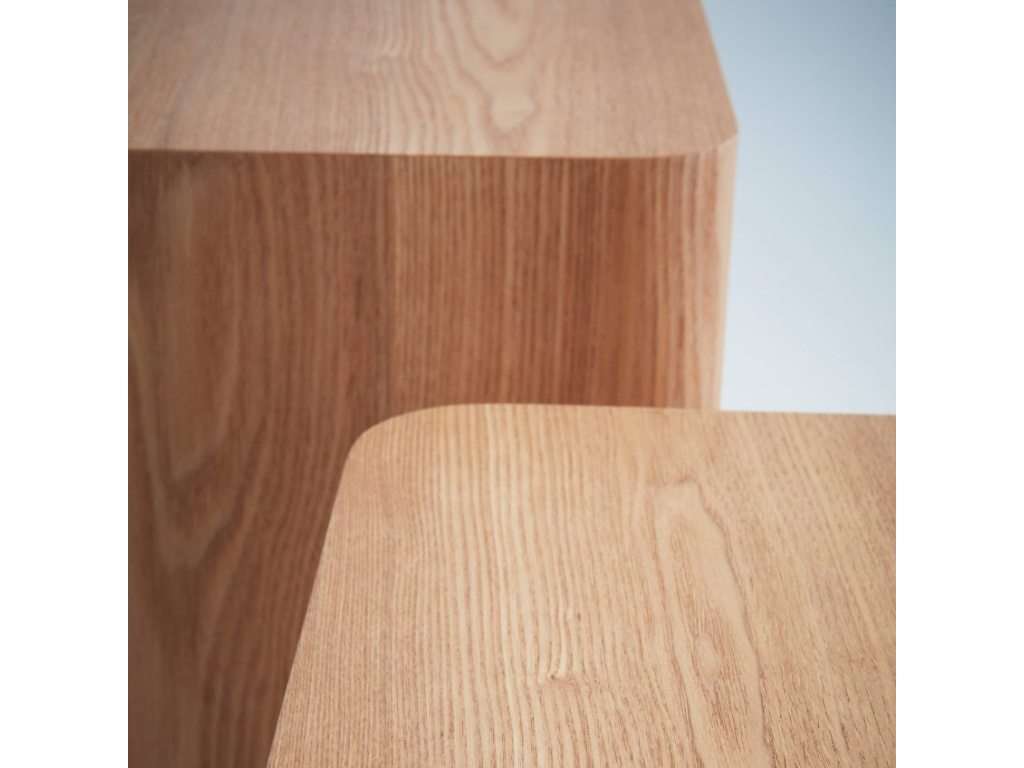 CUBO je nadčasový set dvou čtvercových stolků z jasanové dýhy. Skvěle se hodí jako odkládací stolky vedle pohovky, ale stejně dobře zastanou roli nočních stolků nebo podstavců pro květiny a dekorace. Díky své čisté formě je snadno začleníte do jakéhokoliv stylu – od minimalistického až po přírodní. CUBO – set, který se přizpůsobí se tomu, co právě potřebujete!