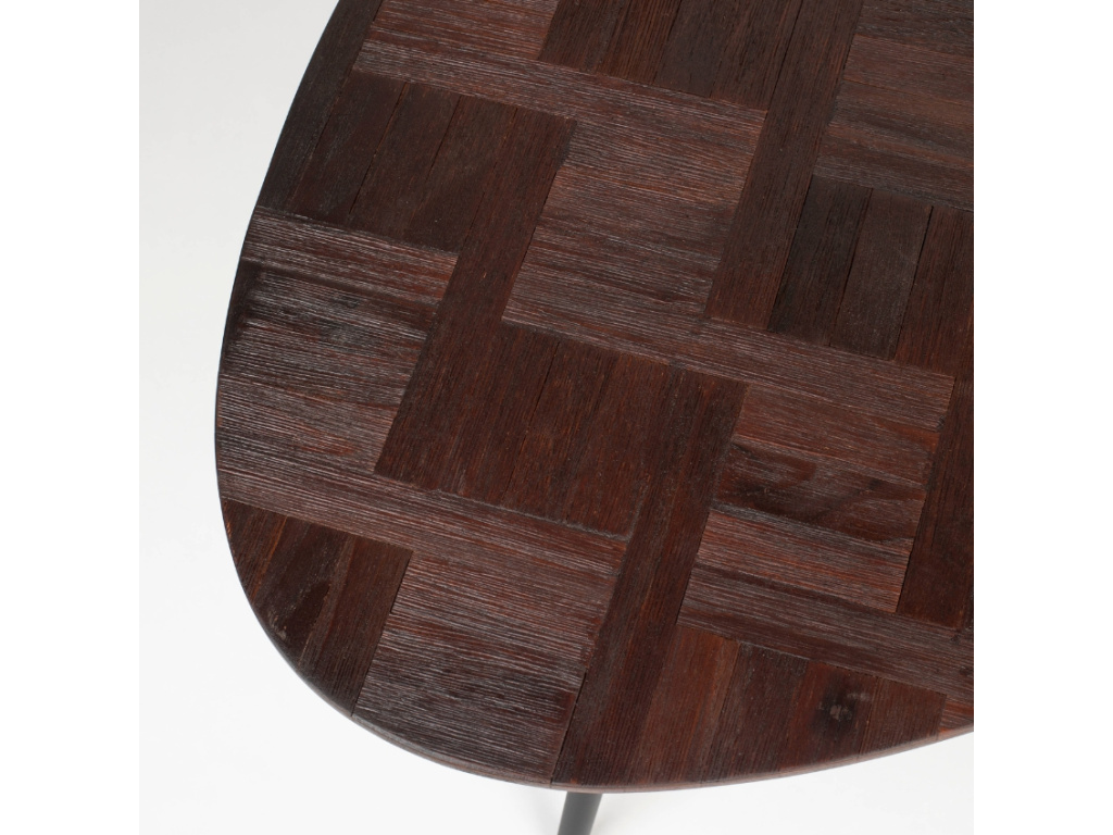 Atypicky tvarované konferenční stolky PION od značky White Label Living zaujmou již na první pohled svým minimalistickým vzhledem. Nadčasový design kombinuje dřevo a kov, čímž získává na originalitě a jedinečnosti. Povrch desek se pyšní nádhernou teakovou dýhou, která svojí strukturou vytváří jedinečný charakter setu. Desky stolků dokonale kontrastují s hladkou podnoží z lakovaného kovu. Odložte si na něj i vy svoji odpolední kávu nebo právě rozečtenou knížku.