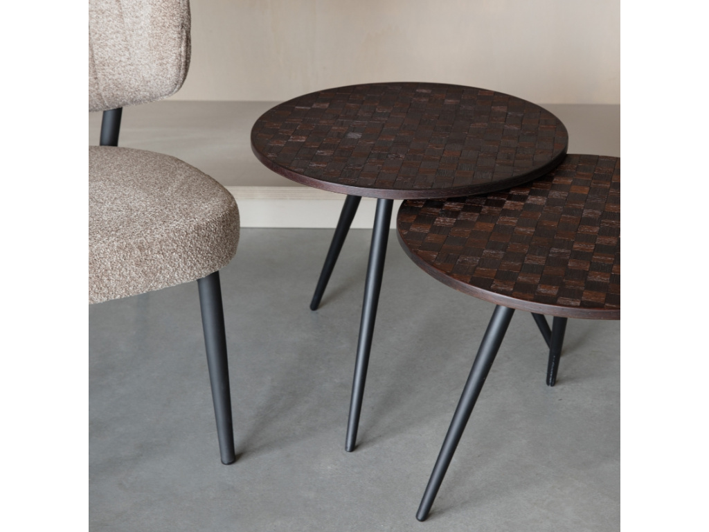 Set odkládacích stolků WEBSTER od značky White Label Living vám padne do oka na první pohled. Čokoládově tmavé teakové dřevo s lehkým medovým žíháním, dodá celku přírodní, ale zároveň moderní vzhled. Tomu přispívá i kovová podnož, pyšnící se sametově černou barvou, díky které zapadnou do přírodně i barevněji laděných interiérů. Vybavte si svůj domov těmito originálními kousky a kombinujte s dalšími skvělými produkty této řady. Stolky můžete umístit jak spolu dohromady, tak každý zvlášť do jiné místnosti.