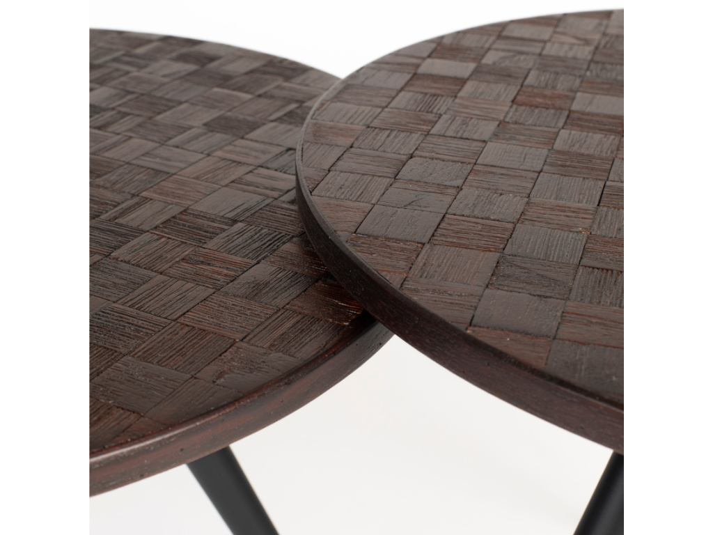 To chciSet dvou tmavě hnědých teakových odkládacích stolků WLL WEBSTER