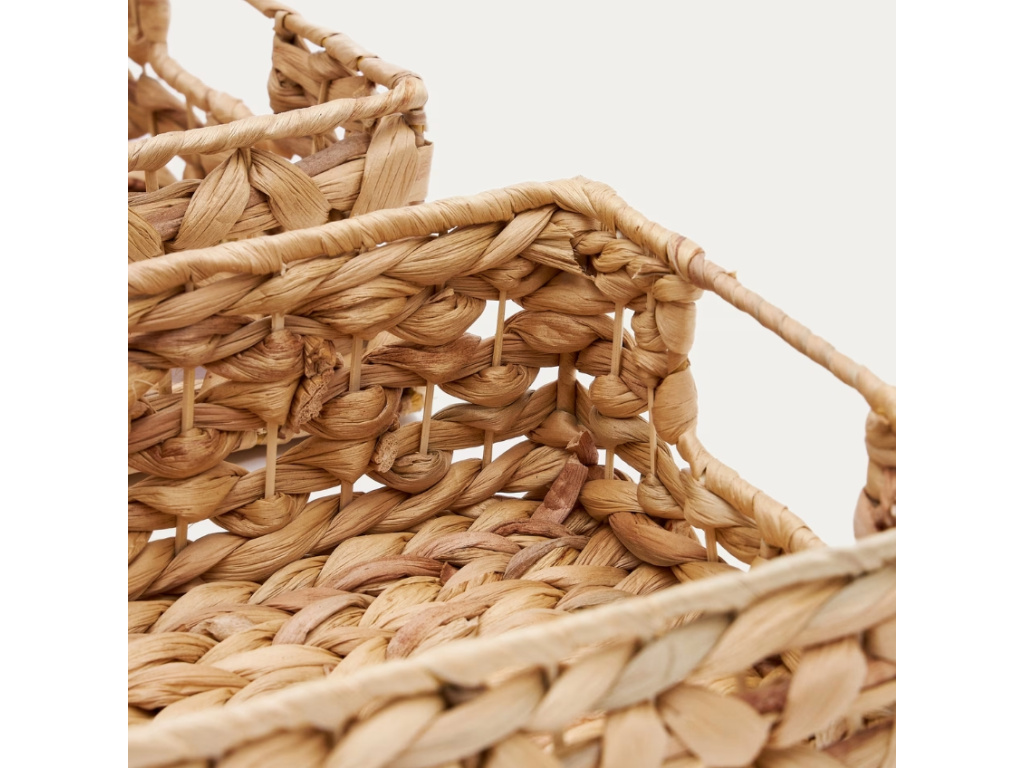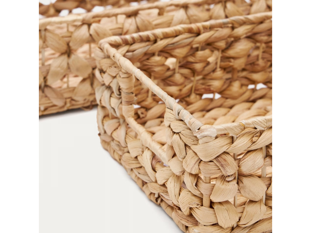 Úložné boxy Tressa vám pomohou zorganizovat nejrůznější drobnosti a cennosti. Jsou spleteny z vodního hyacintu a skvěle se tak hodí do interiérů plných přírodních materiálů. V setu najdete dva různě velké boxy, které můžete díky praktickým rukojetím snadno zasunout třeba do police ve vašem TV stolku. Nejen že budou praktickým pomocníkem, ale také poslouží jako dekorace, která skvěle zútulní každý prostor.