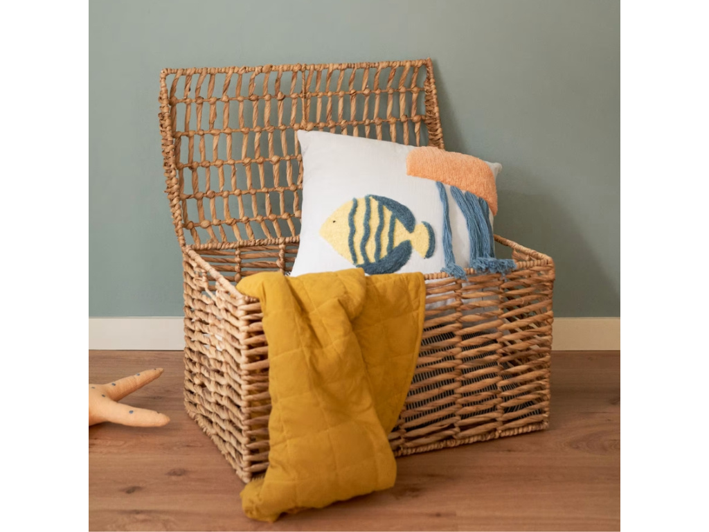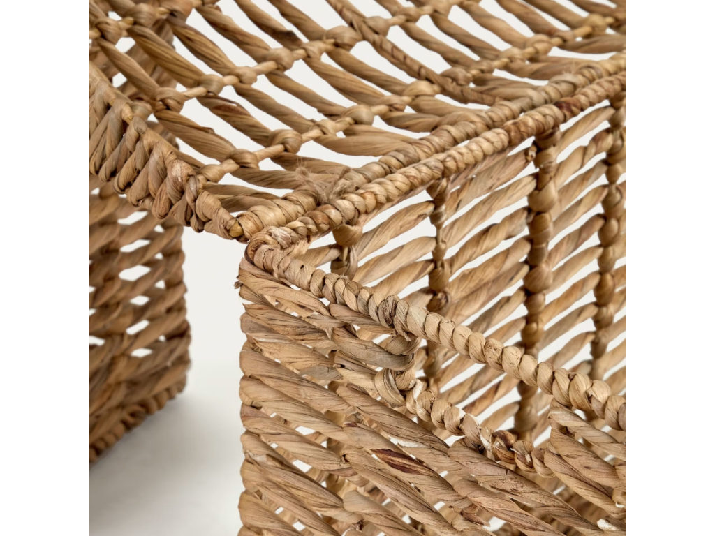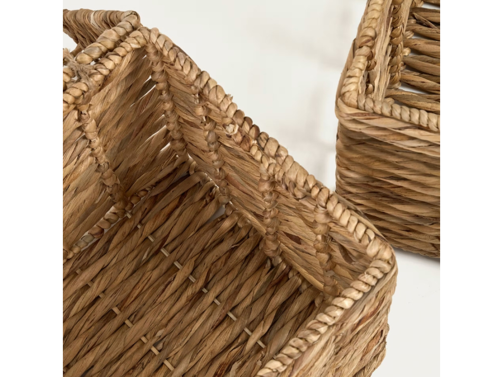 Pokud potřebujete zajistit pořádek v domácnosti, věnujte pozornost setu dvou úložných boxů Xuliana, které svým tvarem připomínají truhly. Na jejich bocích najdete otvory, které skvěle poslouží místo rukojetí a umožní tak snadný přesun. Koše jsou spleteny z vodního hyacintu, který vnese do vašeho domova nádech přírody. Jejich čistý a naturální vzhled skvěle doplní například dětský pokoj nebo ložnici. Vyjímat se budou především v rustikálním, venkovském nebo boho stylu.