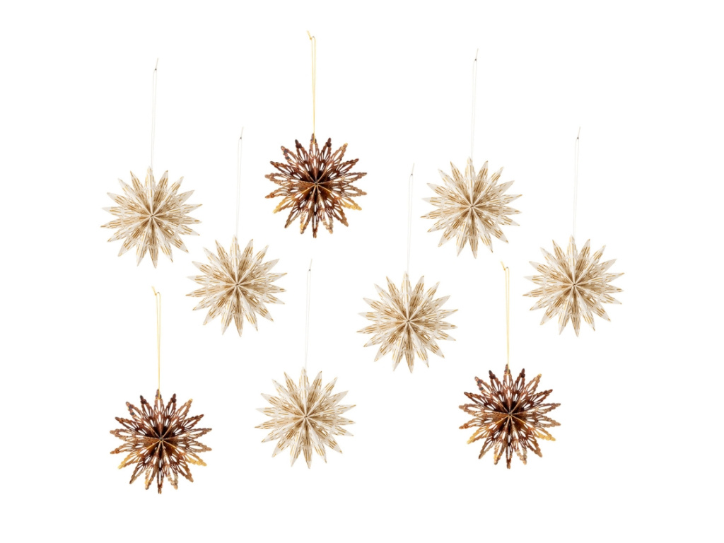 Chcete letos vánoční výzdobu, která bude působit přirozeně a přitom jedinečně? Set vánočních ozdob Star je vyroben z papíru s certifikací FSC, takže nejen skvěle vypadá, ale je i šetrný k přírodě. Neutrální barva a jemné papírové sklady vytvářejí lehký a vzdušný dojem, který skvěle doplní větvičky jehličí i dalšími přírodní dekorace. Ať už je zavěsíte na vánoční stromek, do okna nebo je použijete jako součást svátečního aranžmá na stole, tento set vnese do vašeho domova nádech skandinávské jednoduchosti a klidu.