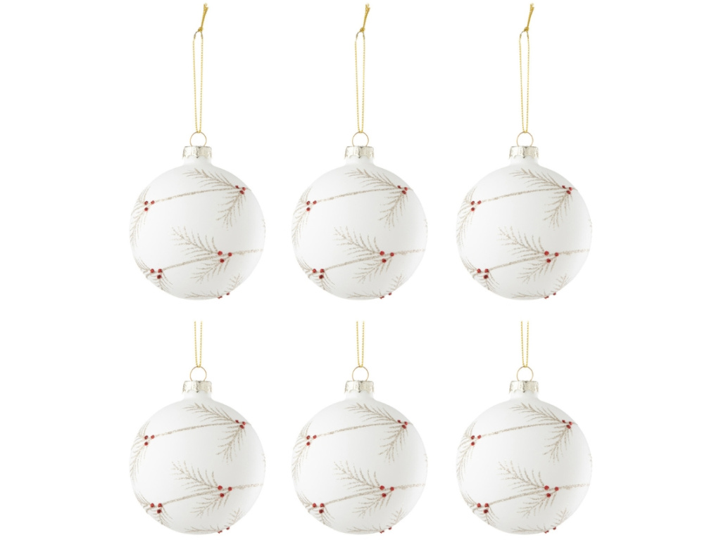 Více infoSet šesti bílých skleněných vánočních ozdob J-Line Dore 8 cm
