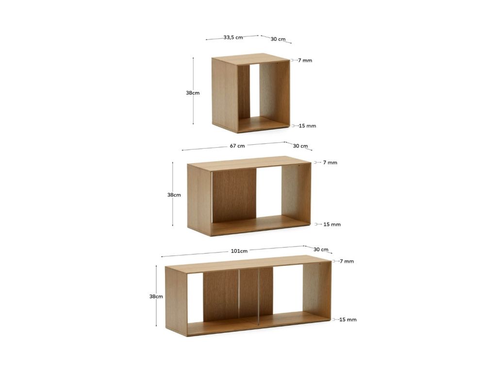 Sestavit úložný policový systém podle vlastních potřeb nebylo nikdy jednodušší! Série produktů Litto od španělské značky Kave Home obsahuje modulární police, které jednoduše seskládáte a vytvoříte tak stylové místo pro uskladnění knížek, dekorací i nejrůznějších trofejí a ocenění. Součástí každého produktu jsou komponenty k upevnění ke zdi i k dalším policovým dílům, takže police budou vždy bezpečně na svém místě. Celá série je dostupná ve dvou provedeních – v ořechové dýze i v přírodně zbarvené dubové dýze. Police se skvěle hodí do minimalistických i scandi interiérů, využití najdou v každé místnosti. Dostupné jsou ve velikostech S, M a L a také v různých setech. V tomto setu najdete po dvou kusech polici velikosti S, velikosti M i velikosti L.