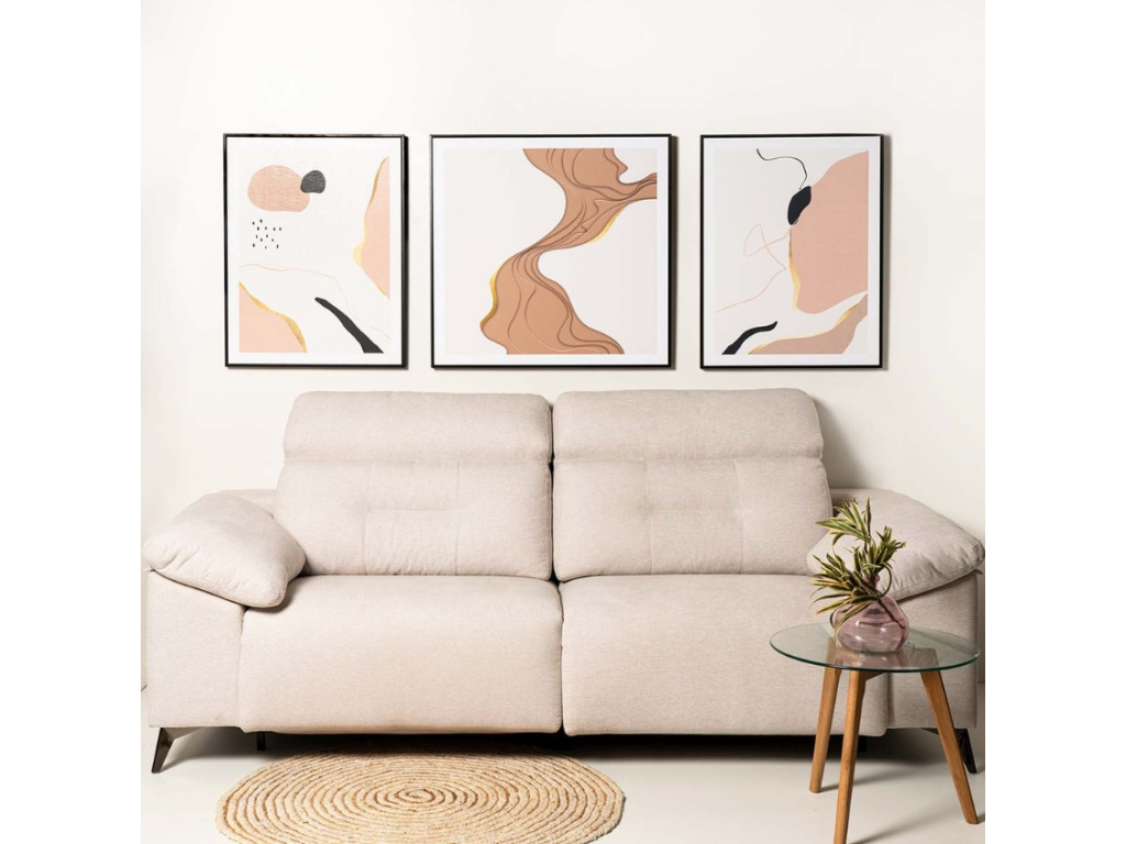 Set tří obrazů Cartograf od španělské značky Somcasa vkusně ozdobí váš interiér a vnese do něj svěží nádech. Obrazy zobrazují kontrastní barvy, organické linie a tvary, které se vzájemně propojují a vytváří tak dokonalou kompozici. Vyladěný triptych tvoří perfektní kombinaci, která nejlépe zazáří v obývacím pokoji či ložnici. Díky kovovým háčkům ho snadno a pohodlně pověsíte kamkoliv na zeď.